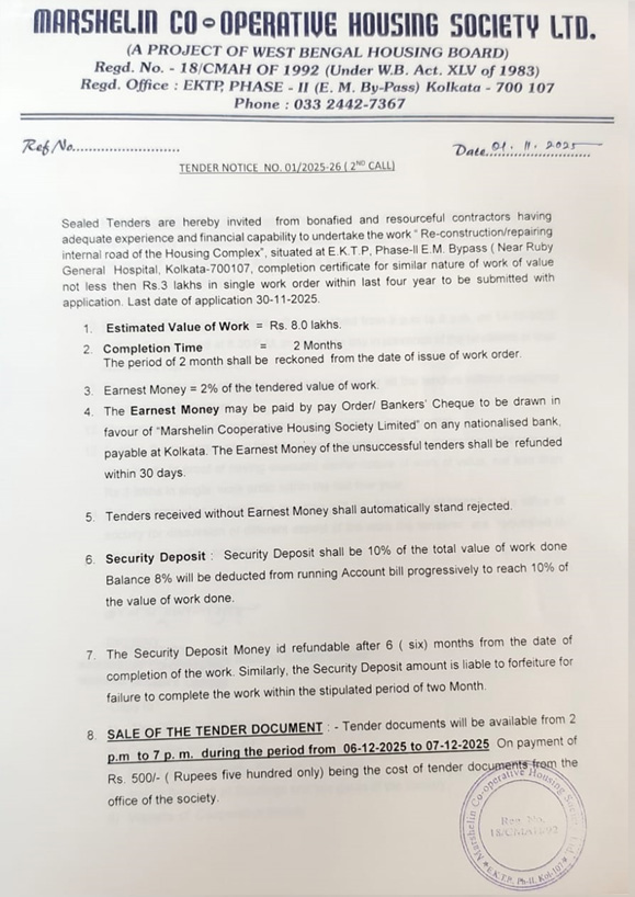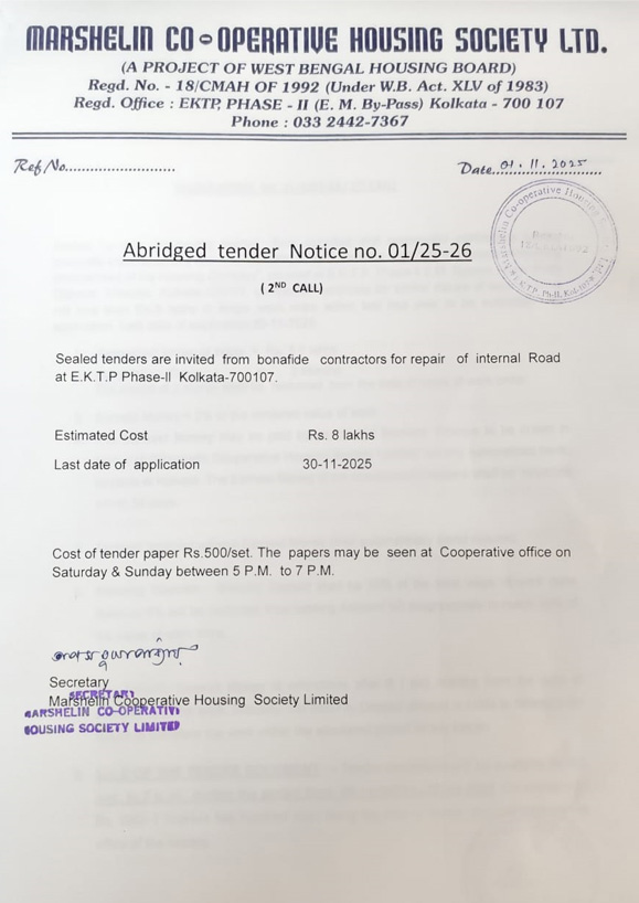 This Society is a primary Housing Co-operative Society and a project of the West Bengal Housing Board situated at East Kolkata Township Project - Phase-II, E.M. Byepass, Kolkata - 107, bearing Regn. No. 18/CMAH of 1992 dated 21.07.1992, under W.B.C.S. Act XIV of 1983. This Housing Project consists of 21 Blocks, each block having 16 units, 4 storied buildings - 11 Block 'A' type having 176 units and 10 Blocks 'B' type having 160 units - total being 336 units. This Housing Complex has been constructed by the West Bengal Housing Board, Govt. of W.B. on an area of 3.466 acres, out of total land of 9.340 acres.